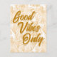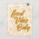 Otra elegante postal de JessicaAmber - pregunta por las órdenes de los personalizados! Esta obra de arte en miniatura personalizable presenta hojas grandes de monstera de color amarillo crema claro, sobre un fondo blanco. Puede cambiar el color de fondo. El texto de caligrafía dice 'Sólo buenas vibraciones', que también se puede cambiar. ¡Hace un gran regalo para tu madre o esposa que piensa positivamente! Creado el 22 de marzo de 2023 🌙 Para diseños follaje más modernos, visita mi tienda: Zazzle.com/store/DriftwoodAndDreams 🌙 Para pedidos de personalizados, envíame un correo electrónico a jessicaamberartist+custom@gmail.com