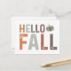 Este diseño de otoño da la bienvenida calurosamente a la temporada de otoño con la frase "Hello Fall". Las palabras están dispuestas en un diseño simple pero visualmente atractivo, con "Hello" colocado sobre "Fall". Cada letra de la frase se presenta en un tipo de letra atrevido y bloqueante con una textura un poco angustiada, dándole una apariencia rústica y caprichosa que complementa el tema otoñal.
