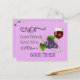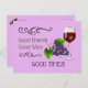 Esta postal contiene un vaso de vino y uvas junto con un texto que dice "¡Buenos amigos buenos tiempos de vino!" El color de fondo se puede personalizar. En la parte de atrás hay una versión más pequeña de las uvas y el vino junto a la dirección de retorno. También hay líneas gobernadas en la parte posterior para agregar una dirección.