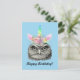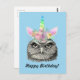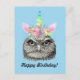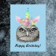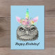 Postal Búho-Corno Antigüedad Unicornio Búho Feliz Cumplea