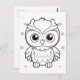 Tarjeta postal para colorear búho festivo niños