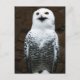 Búho nival - Retrato de un búho nival parado sobre un tronco.