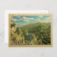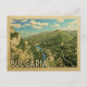 Bulgaria Alemania diseño en estilo Viaje Vintage con una hermosa y vasta vista del país con montañas y río.