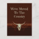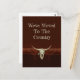Personalizado rústico de cráneo de vaca toro con postal móvil. Hogar, dulce hogar de vuelta. Diseño inspirado en la antigua casa de campo occidental. Estilo vaquero del oeste. Guay, arte moderno y de moda en animales de granja.