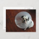 el cachorro Selma no estaba contento después de que el veterinario médica le pusiera este horrible cono de plástico en la cabeza
