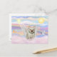Un Bulldog francés prueba sus alas entre las nubes esponjosas del cielo antes de entrar en el Puente Arcoiris, donde los ángeles y amigos esperan.l