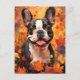 Postal Bulldog Francés Acción de Gracias de Otoño
