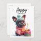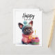 Bulldog francés adorable, vestido rosa, postal de pastel de cumpleaños