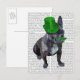 Postal Bulldog francés con sombrero verde superior y bigo