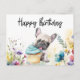 Esta postal de cumpleaños incluye un Bulldog francés en un campo de flores. El perro está rodeado de flores coloridas, con un mensaje de cumpleaños escrito en guion Regalos para entrenador, instructor, profesor, amigo, mamá, papá, novia/novio, compañero de trabajo, anfitriona, vecino, él/ella, parejas, abuelos, jefe, niños, mejor amigo, familia, suegros, equipo,