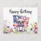 Postal Bulldog francés en campo de flores Cumpleaños
