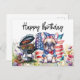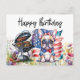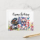 Postal Bulldog Francés en campo de flores de cumpleaños