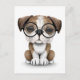 Postal Bulldog inglés lindo cachorro con lentes de vidrio