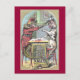 El mono rompe una botella de vino tinto sobre la cabeza del bulldog después de ser acusado de hacer trampa en las cartas en esta tarjeta de comercio victoriana del siglo XIX.