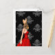 Personaliza fácilmente este divertido y bonito collage de un conejo animal con baile vestido de rojo, vestido con un fondo negro de damasco vintage, con tu nombre o texto para crear un producto humorístico único.