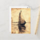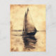 Barco vintage de vela en carbón vegetal sobre un fondo de pergamino.