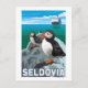 Puffins & Cruise Ship - Seldovia, Alaska - Vintage Travel Poster fue creado en 2007. Esta imagen muestra escenas de Seldovia, AK.