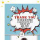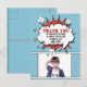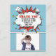 Tarjeta postal de cumpleaños con foto de agradecimiento Burbuja de diálogo de cómic de superhéroe. Agrega tu foto, mensaje y nombre. Divertida tarjeta de cumpleaños de agradecimiento de dibujos animados para niños.