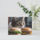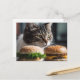 Un sereno gato en forma de tabby se sienta tranquilamente, con dos hamburguesas de queso delante, esperando el momento perfecto para dejarse llevar. La glosa mirada del gato es introspectiva, perdida en el pensamiento, mientras contempla la deliciosidad ante ella. La sencillez de la imagen contradice su encanto, ya que los detalles sutiles de la piel del gato y las tentadoras hamburguesas se unen para crear un delicioso regalo visual. Creado con tecnología de IA, este diseño está disponible en una variedad de productos de Zazzle, desde ropa hasta decoración casera y más, listos para traer un toque de brillo felino a su vida diaria