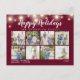Felices vacaciones de fondo burdeos con fondo de luces de cadena que se pueden personalizar con 8 postales de fotos.