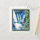 Una pintura digital de una cascada que se encuentra en California, Burney Falls. Una mariposa marrón y blanca se extiende sobre una rama que se extiende a través de la vista panorámica. Derechos reservados ©2023 Kimberly J Tilley.