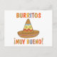 ¡La comida mexicana es realmente la mejor! Comparte tu amor por los deliciosos Burritos con este diseño colorido con un Sombrero y las palabras Burritos Muy Bueno!