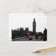 Los bus turístico de Londres y ben grande, esta fotografía tiene dos bus turístico de Londres en el primero plano que estén en color rojo con ben grande y el contexto de Londres en un blanco y negro borroso.