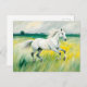 Postal Caballo blanco corriendo por el prado