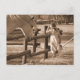 Postal con la foto sepia / en blanco y negro de un caballo y su hijo.