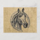 La imagen vintage (de dominio público) es un ilustracion de estilo cameo de un caballo con marco herradura. Fondo de textura Burlap