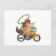 Postal Caballo como Vaquero con Lasso y Motocicleta