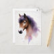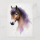 Esta postal equina presenta una elegante pintura acuarela de un caballo, capturando la gracia y la belleza de este majestuoso animal con suaves y fluyentes pinceladas. Los ojos expresivos del caballo y sus delicados rasgos faciales se ven resaltados por un abrigo marrón cálido y natural, bellamente contrastado con una sorprendente manera morada que se mezcla perfectamente con el fondo aireado y abstracto. Sutiles salpicaduras de lavanda y tonos violetas añaden una calidad etérea de ensueño, realzando la serenidad y el ambiente sofisticado de las obras de arte. ¡Ideal para los amantes de la equitación y de los animales! La postal es personalizable; ¡agrega tu propio texto!