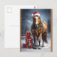 Postal caballo con sombrero de santa y regalos de navidad