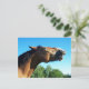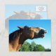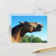 Un gran caballo se adentra en el aire con una hilera de árboles estivales a lo lejos y bajo un hermoso cielo azul y árboles verdes. Tal vez le está diciendo hola a alguien. Tal vez tú también puedas. Dile hola a alguien que lo disfrutaría. A la gente le encanta recibir algo por correo.