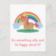Kawaii personalizado de caballo marrón con una forma rosada rojiza que tiene un cono de helado en la frente y un corazón en el trasero. Detrás del caballo hay un arco iris con dos nubes. El caballo está utilizando su forma única de poner el cono de helado en su cabeza para ser un unicornio. Puede parecer tonto pero el caballo está feliz por eso. El mensaje sugerido para el diseño podría ser "¡Haz algo tonto y sé feliz por eso!". No podemos resistirnos a sonreír en este diseño feliz. Este colorido, adorable, atractivo y extravagante diseño "unicornio" es adecuado para animar a alguien. El color de fondo se puede cambiar a su color de preferencia utilizando la opción de fondo. Diseñado por Rusty Doodle.