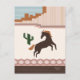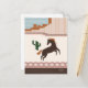 Envía una nota con espíritu salvaje y estilo atemporal. Esta llamativa postal cuenta con un poderoso caballo marrón a mitad de gallo al lado de un único cactus del desierto, situado en un fondo inspirado en los patrones y colores de las tradicionales mantas nativas estadounidenses. Ilustrado por Noël Snow en un estilo limpio y gráfico con un ambiente acogedor y tejido, es perfecto para coleccionistas, amantes del caballo o cualquier persona que aprecie la belleza del indomable Occidente.