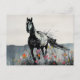 Postal Caballo negro con flores silvestres