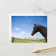 Postal Caballo parado en una cerca en un pasto