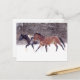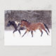 Esta imagen rústica de estilo western muestra un semental bayo parado fuera de un establo junto a una yegua pinto de pintura en negro y blanco. Una imagen perfecta con tema ecuestre para las fiestas de Navidad y Año Nuevo.