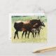 Caballos y cachorros de bebé en el campo en un rancho o granja en el campo