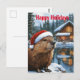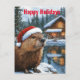 Postal Cabaña en el lago del bosque Navidad Castor Acuare