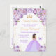 Esta elegante y glamurosa invitación de cumpleaños de sweet sixteen presenta a una hermosa princesa con cabello castaño en un vestido de baile de color morado claro. El texto combina la escritura a mano y las fuentes modernas sans serif para un aspecto clásico y sofisticado. Los arreglos florales, la mariposa y el confeti dorado crean la mezcla perfecta de rústico y chic.