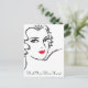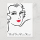 Dibujo vintage de una joven bonito con cabello ondulado. El único color son sus labios rojos. Hay texto de personalizable en postales y tarjetas. Perfecto para cumpleaños, felicitaciones, invitaciones o un "Ojalá estuvieras aquí"