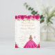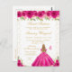 Esta elegante y glamurosa invitación de cumpleaños de sweet sixteen presenta a una bella princesa con cabello rubio y piel clara en un vestido de baile rosa fuerte. El texto combina la escritura a mano y las fuentes sans serif modernas para un aspecto clásico y sofisticado. Las disposiciones florales, las mariposas y el confeti dorado crean la mezcla perfecta de rústico y chic.