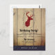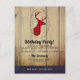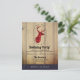 Invitación de cumpleaños con estilo rústico. Diseñada con una cabeza de ciervo con cornamenta, hecha de cuadros rojos. Un marco ovalado elegante rodea la imagen. Tablas de madera falsas le dan un ambiente campestre.
