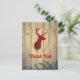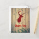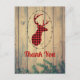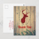 Tarjeta postal de agradecimiento para fiesta con estilo rústico. Diseñada con una cabeza de ciervo con cuernos, hecha de cuadro escocés rojo. Un marco ovalado elegante rodea la imagen. Tablas de madera falsas le dan un ambiente campestre.