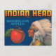 Etiqueta de caja de fruta vintage para las manzanas de Washington con un indio americano ilustrado con un vestido de pluma en la cabeza.