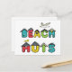 El diseño de los Beach Huts es un gráfico divertido que muestra las palabras que se han hecho para que se asemejen a una hilera de cabañas en la playa. Para estancias vacacionales, vacaciones marítimas británicas y ventiladores de cabaña de playa.
