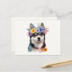 Postal Cachorro lindo de Husky Siberiano con Flores