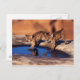 Hermosos gemelos cougar que juegan en el agua, un bonito paisaje